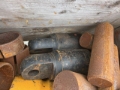 Grab Body With 5 Ropes Pulleys 480mm Diameter with Bearings,, Closing and Lifting Ropes 28mm Diameter,, Jaw Rods,, Spherical Jaws Ere 1290mm and 1680mm Diameter with Cat Teeth,, (4x) Pallets of Spare Parts Including Pins,, Teeth,, Pins and Assorted Seals