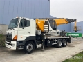Diesel Engine, 3702 Engine hrs, Retarder, ZF 8-Speed Manual Transmission, Differential Lock, Left Hand Drive, 315/80R22.5, Spring Suspension, 5400 mm Wheelbase, PTO, Hydraulic System, 250 kg Capacity, Center Mounted, Two-Person Telescopic Boom, Flatbed, Out and Down Outriggers, Rear Outriggers, Remote Control w/Cord