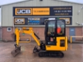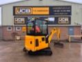 JCB 16C-1 MINI EXCAVATOR - CAB WITH HEATER, RUBBER TRACKS, ISO CONTROL PATTERN: HIGH FLOW; DOUBLE ACTING AUX, EXTENDING UNDERCARRIAGE, STATIC FABRIC SEAT, 1100MM DIPPER, STANDARD DOZER WITH SWING OUT EXTENSIONS, AUTO KICK DOWN TRACK MOTORS, 1 X USED BUCKET - LOCATION: TCH JCB LINCOLN