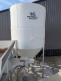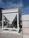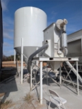 Ernest Industries Shortstop Concrete Blender, Two 8-cubic yard aggregate hoppers, hoppers 1/4" steel construction, 12" trough conveyor under each hopper, 18" trough discharge belt with 5-HP motor, 220-barrel cement silo with bag house, simple to calibrate and operate, adjustable-height discharge conveyor, heavy steel tubular frame, all electric powered 230/460V, PLC batch control, user-defined batch recipes, water metering system for slump control, standard off-shelf electrical components, fills trailer mixers and small mixer trucks. volumetrically blends cement, aggregate, and water to produce ready mixed concrete, designed for loading mix trailers and small ready mix trucks, two aggregate bins, 220-barrel cement silo, PLC batch control with adjustable recipes, slump control, and admix pump.