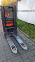 Endkundenbemerkung: Die Angabe der Betriebsstunden kann aufgrund von Zwischenvermietungen vom tatsächlichen Wert abweichen. Aktuelle Betriebsstunden erhalten Sie jederzeit gerne auf Nachfrage. Die Auslieferung des FFZ erfolgt mit gültiger FEM-Prüfung und technischer Durchsicht in unserer Werkstatt., Sonderausstattung: f. Breite ü. Gabelzinken 560mm, Hydraulische Stützrollen, Fahrgeschwindigkeit 10km/h, Schleichfahrtfunktion, Vorbereitung für Nassbatterien, Batt. Kabel m. Anschluß Flex, Durchgreifschutz Drahtgewebe, Bügel für Anbauelemente, Halter Terminal + 24 V Spann., Klemmbrett, Soft Landing des Gabelträgers