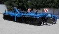 Kurzscheibenegge mit 4 Metern Arbeitsbreite, hydraulische Klappung, gezackte Scheiben mit 610 mm Durchmesser und wartungsfreien Lagern, Dachringwalze mit Tiefenverstellung, Randscheibenelemente und wartungsfreie Steinsicherung (Gummifederelemente), Beleuchtung mit Warntafeln. Striegel, Stab-, Packer-, Federring bzw. Gummiringwalze optional verfügbar. Arbeitsbreiten von 2,5 bis 6,0 Meter mit hydraulischer Klappung bzw. Fahrwerk verfügbar.
