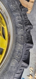 280/85 R24 foran og 270/95 R36 bak, C-C dekk er 1,9 meter.