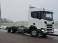 Number of axles: 3, Configuration: 6x2, Own weight: 11680 kg, Gross vehicle weight: 27000 kg, Total fuel capacity: 600 litre, Chassis-height: 97 cm, fifth-wheel: Fixed, Diff. locks: 1, Aluminium rims, Suspension type: air suspension, Cabin type: Sleeping cabin, Cruise control, Tacho, Digital tachograph, Airconditioning, Number of airbags: 1, Parking heater, Electric windows, Electric mirrors, Radio/cassette, Carplay, GPS navigation, Color: Multicolored, Heated mirrors, Lighting type: Led lamps, Laneassist, Climatecontrol, Seat heating, Bluetooth, Blind spot sensor, Engine capacity: 368 Kw (493 Hp), Fuel type: diesel, Euro: 6, Gearbox kind: Opti-cruise, Gearbox make: Scania, Number of Gears: 12, Add. break system, Retarder make: Scania, Power steering, ABS, ASR, Starter battery, Central locking, Seats configuration: 1+1, Seat cover: cloth, Chair adjustment: Manually, 6X2*4,durabright